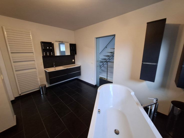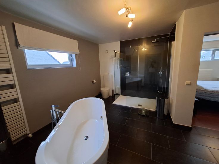 - ruime luxueuze badkamer met inloopdouche en vrijstaand bad