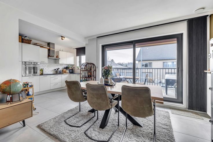 Voor meer info of een bezoek, bel 054 69 39 36 - Recent, energiezuinig appartement gelegen op de eerste verdieping nabij het centrum van Affligem. Winkels, scholen en openbaar vervoer bevinden zich in de nabijheid. De gemeenschappelijke inkomhal is voorzien van een lift en een trap die toegang geeft tot het appartement. Het appartement bestaat uit een inkomhal die doorloopt naar de zit- en eetkamer, volledig ingerichte open keuken met een schuifraam en naar het terras. De nachthal geeft toegang tot het gastentoilet, berging, badkamer en twee slaapkamers. Verder beschikt het appartement over een staanplaats en een berging. Vloerverwarming op aardgas - Buitenschrijnwerk in aluminium met dubbele beglazing - Elektriciteit conform - Energiezuinig!