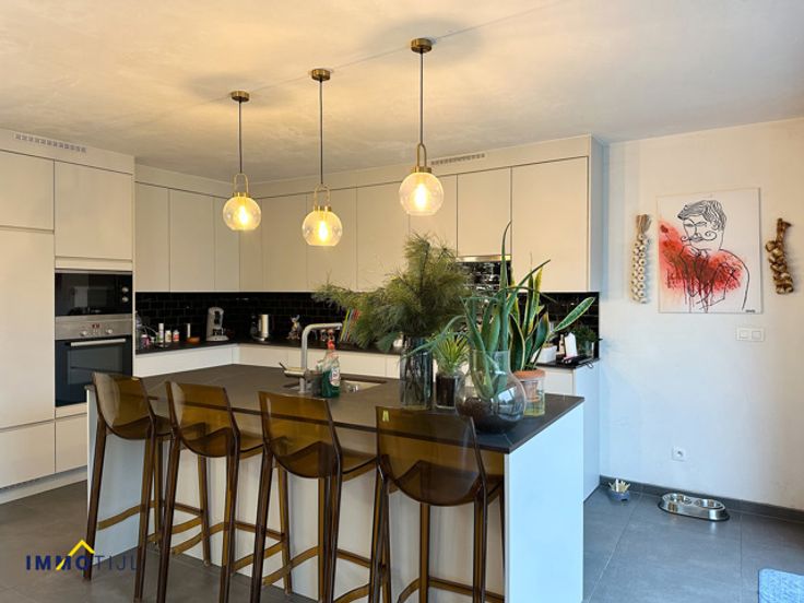 Welkom in dit stijlvolle en lichtrijke appartement in het charmante Kerksken, waar luxe en comfort centraal staan. Bij binnenkomst word je verwelkomd in een ruime inkomhal, die toegang biedt tot de royale en zonnige woonkamer. De moderne, volledig uitgeruste keuken sluit hier naadloos op aan en beschikt over een aangrenzende berging, ideaal voor extra opslagruimte. Dit appartement beschikt over drie ruime slaapkamers, waaronder een masterbedroom met een eigen badkamer (inloopdouche, dubbel lavabomeubel en toilet) en een grote dressing. Daarnaast is er nog een tweede badkamer met ligbad en lavabomeubel, evenals een afzonderlijke praktische wasruimte. De buitenruimte is een absolute troef: een ruim terras biedt de perfecte plek om te ontspannen en te genieten van de rustige omgeving. Bovendien beschikt het appartement over twee overdekte privéparkeerplaatsen en een ruime kelderberging, verder is het volledige gebouw en appartement rolstoeltoegankelijk en is er een lift aanwezig. Met zijn hoogwaardige afwerking, ruime indeling en uitstekende ligging is dit unieke appartement een buitenkans. Mis deze kans niet en plan vandaag nog je bezichtiging! Neem alvast een kijkje binnenin via onze virtuele rondleiding! Voor meer info en/of een bezoek, contacteer ons via aalst@immotijl.be of 053 42 46 99.