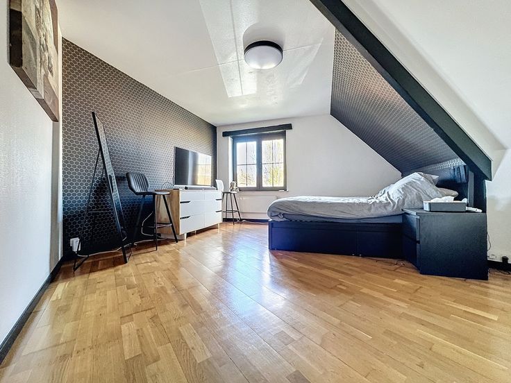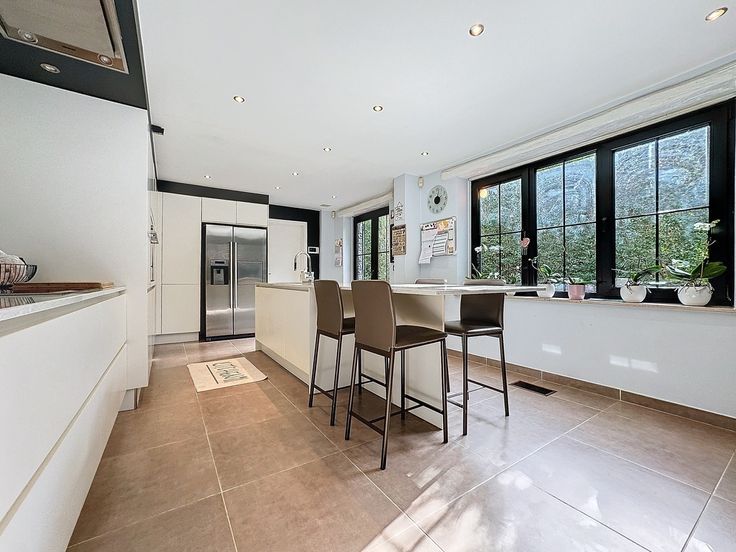 Située à proximité immédiate du centre de Waterloo, cette villa développe une superficie totale de ±260 m² sur un terrain de ±6 ares 10. Le rez-de-chaussée comprend un hall d’entrée avec vestiaire et toilette invités, menant à un chaleureux living de ±40 m², équipé d’un feu ouvert. Ce dernier donne accès à une cuisine hyper-équipée de ±24 m², comprenant un grand îlot central. L’étage se compose de trois chambres de ±24 m², 20 m² et 14 m², se partageant une salle de bains de ±10 m². Le bois, matériau prédominant, confère un très beau cachet à cette splendide villa. Une terrasse de ±50 m², un garage, deux emplacements de parking extérieurs et une piscine chauffée complètent ce bien. À visiter sans plus tarder !