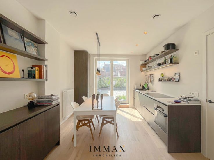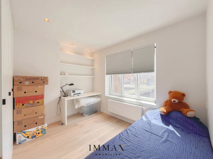 Magnifiek en uniek triplex appartement met 4 slaapkamers en een ruim zuidgericht terras gelegen in het hartje van Brugge Centrum! Het appartement is gelegen in een zijstraat van de Noorzandstraat & de Zuidzandstraat tussen 't Zand en de Markt. Openbaar vervoer binnen handbereik en een vlotte verbinding richting de E40, E403 en de ring van Brugge. Dit appartement omvat volgende indeling: inkomhal met vestiaire - leefruimte bestaande uit eetruimte met een volledig uitgeruste open keuken en living - zuidgericht terras van 60m² - berging met technieken. Op het verdiep: nachthal - ruime slaapkamer met inbouwkasten en bureau - eenpersoonskamer met inbouwkasten en bureau - badkamer met bad en dubbele lavabo - toilet. Op het 2e verdiep: nachthal met wasplaats (inclusief wasmachine & droogkast) - 2 x eenpersoonskamer met inbouwkasten en bureau - badkamer met douche, enkele lavabo en toilet. Huurprijs: €1.850/maand Beschikbaarheid: vrij vanaf 1 juni 2025 Extra troef: volledig bemeubeld