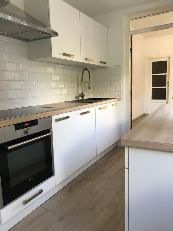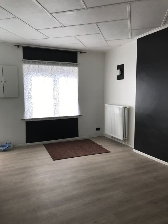Agréable maison (+/- 100m2 habitable) Composée d'un salon, salle à manger, cuisine équipée, salle de douche avec WC, 2 chambres + 1 bureau. Jardin avec petite terrasse et remise. Nouvelle installation de chauffage au gaz (2021) - poêle à pellets - 2 caves saines