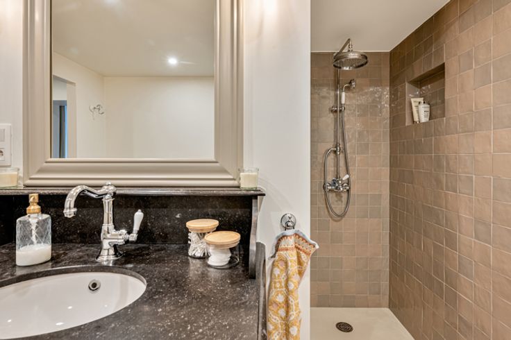 De woning beschikt over een recent vernieuwde badkamer, stijlvol ingericht in harmonie met de rest van de hoeve. Verder vindt u op het gelijkvloers een ruime & geriefelijke berging en tot slot een keldertje.