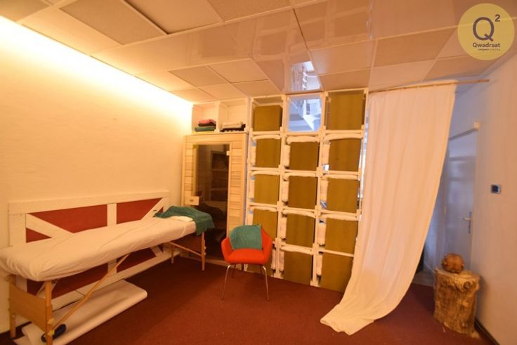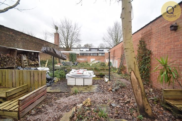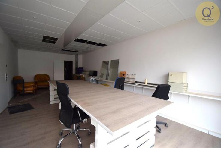Aan de rechtse zijde is er een bureel/winkel dat verbonden kan worden met het groot magazijn. Het bureel heeft een aparte ingang.