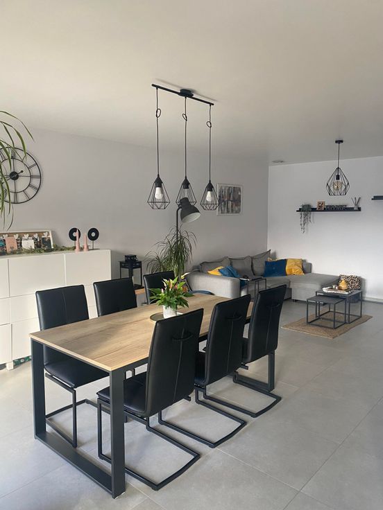 Open keuken met eethoek, zithoek en klein terras vooraan. Berging, toilet en badkamer met douche. Achteraan een groot terras. Inclusief carport en tuinhuis. Energiezuinig.