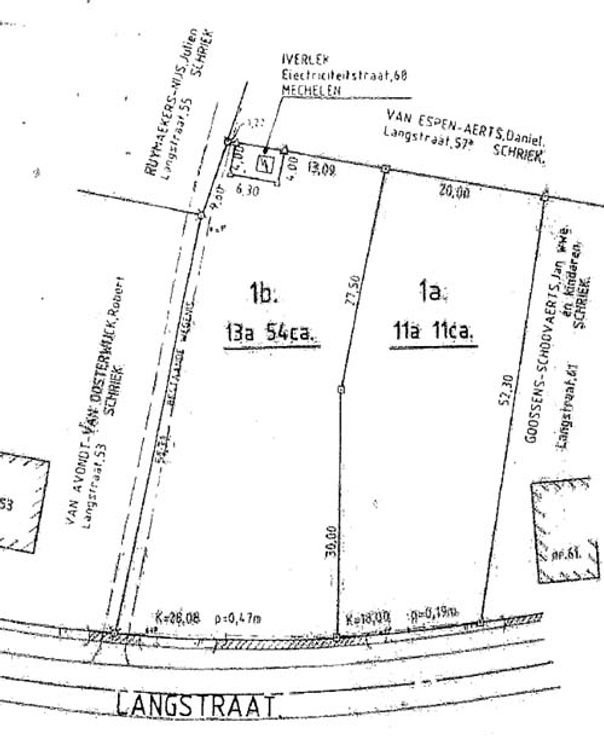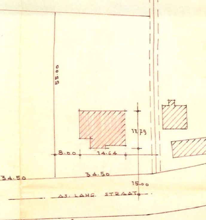 De zijweg rechts van de Langstraat ligt voor de helft op het perceel.