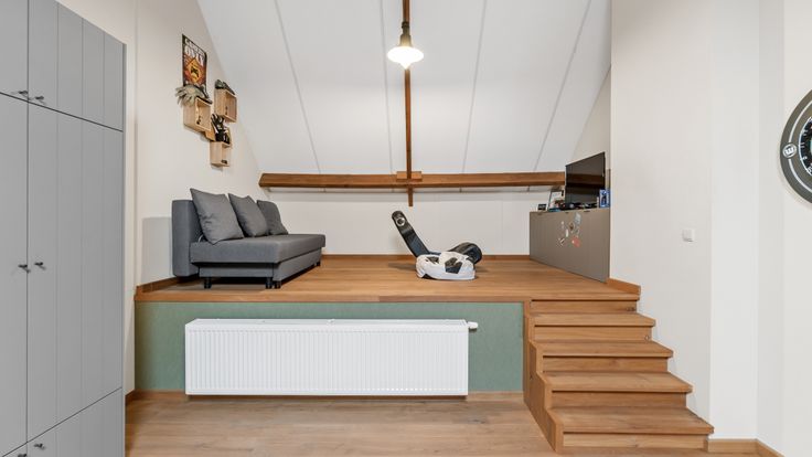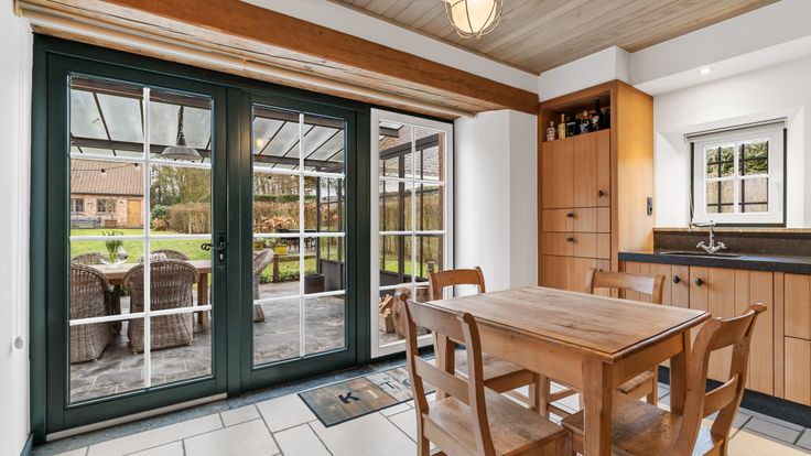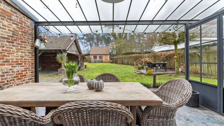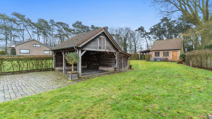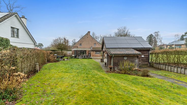 Het bijgebouw biedt veel mogelijkheden: het kan dienen als atelier, partyhouse of praktijkruimte. Er is een overdekt terras aan de keuken, en een ander terras bij het bijgebouw. De tuin is uitgerust met zowel beregening als verlichting. Bovendien liggen er zonnepanelen op de dubbele carport, wat bijdraagt aan de duurzaamheid van het huis.