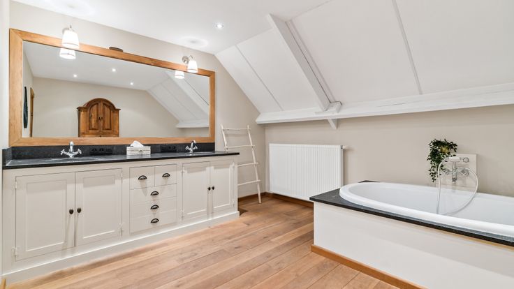 Op de eerste verdieping bevinden zich twee ruime slaapkamers, met de mogelijkheid om uit te breiden. De badkamer is royaal en voorzien van een bad, terwijl er beneden in de berging een aparte douche is. Het huis heeft centrale verwarming met een gascondensatieketel en een oude gewelfde kelder, ideaal voor wijnliefhebbers en een extra buitenberging.