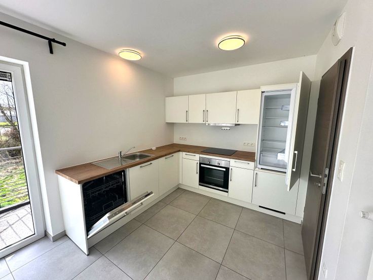 Superbe appartement situé au premier étage d'un petit immeuble de 5 logements, composé d'un séjour avec une cuisine équipée ( four, frigo, hotte, plaque vitrocéramique, lave-vaisselle ), d'une buanderie, d'une salle de douches ( douche, meuble lavabo, WC, radiateur sèche serviettes ), et de deux chambres.