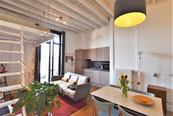 Verder geniet u van de combinatie tussen industriële look en landelijke charme. De hoge plafonds zorgen hierbij voor een zeer ruimtelijk gevoel.