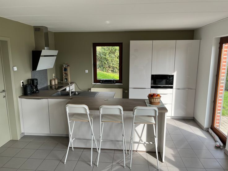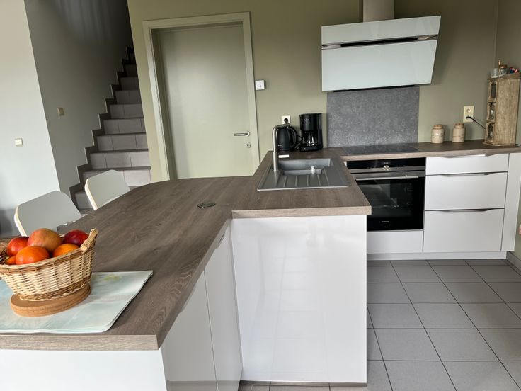 Cuisine équipée avec presqu'île et tous les électro-ménagers haut de gamme.