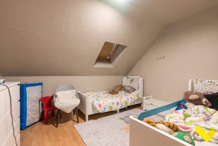 -Via een trap naar de nachthal, bereiken we 3 ruime slaapkamers met oppervlaktes van 12 tot 14 m², vloerbedekking in laminaat.