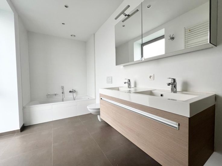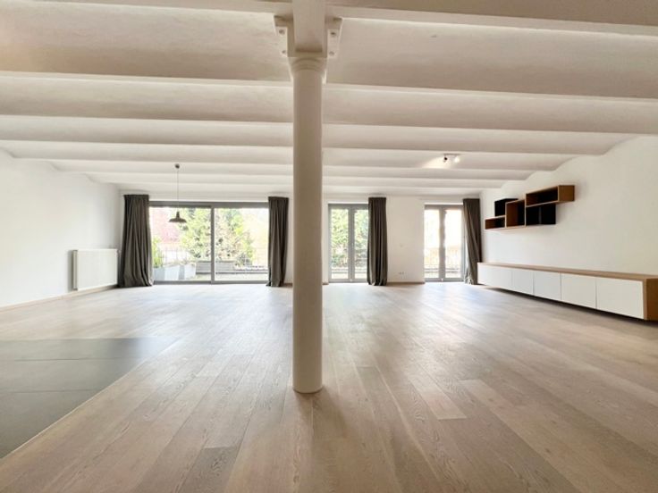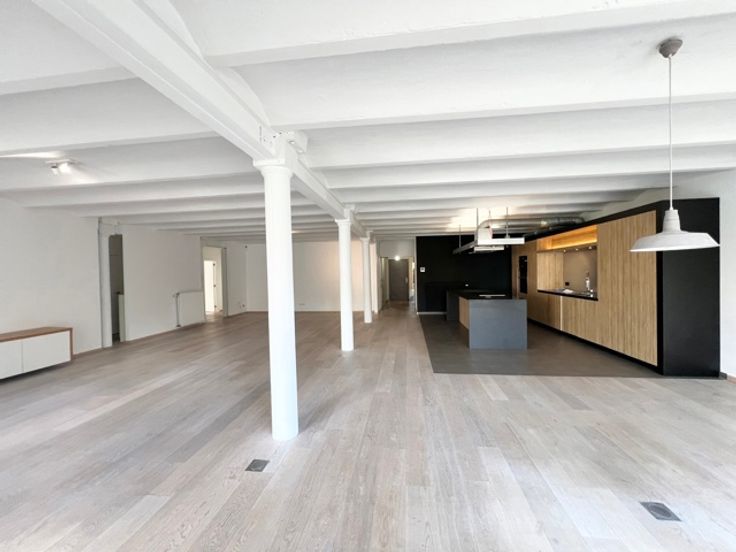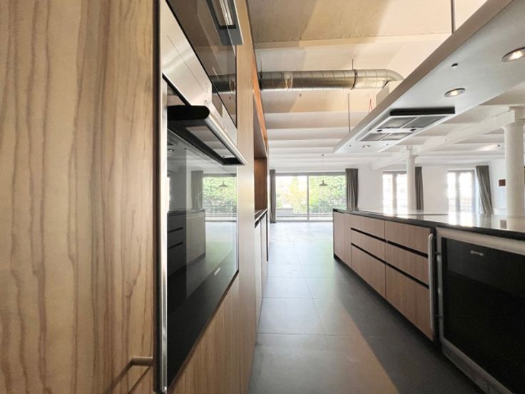 ATOM agency infos et visites avec Blandine - 0485893831 Prachtig energiezuinig appartement met 3 slaapkamers in loftstijl en groot terras, op een steenworp afstand van Flagey en de vijvers van Elsene. Het is als volgt samengesteld: een inkom met vestiaire, een wasplaats en bijkeuken, een mooie, lichte en vrij zichtrijke woonkamer van +/- 105m² met open keuken, grote erkers die uitgeven op een terras en tuin van 55m². Een eerste master suite van +/- 35m² met grote kleedkamer en badkamer, twee slaapkamers van +/- 13m² en een doucheruimte, apart toilet. Het appartement is mogelijk beschikbaar vanaf augustus Gemeenschappelijke gasboiler, driedubbele beglazing, ingerichte keuken (stoomoven, koelkast, vaatwasser,), ingerichte wasruimte (wasmachine, droger) Videofoon, versterkte deur, lift, kelder, fietsenstalling. Voorziening voor kosten: € 300 (verwarming, gemeenschappelijke ruimtes, water) Mogelijkheid tot twee parkeerplaatsen à 100€ elk