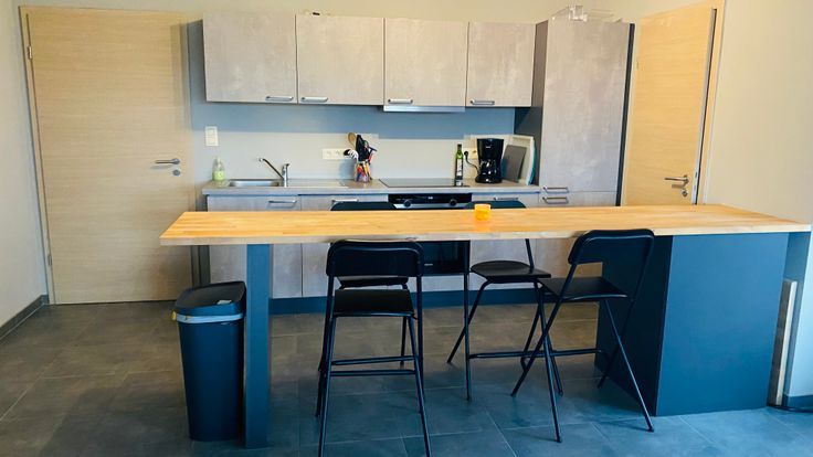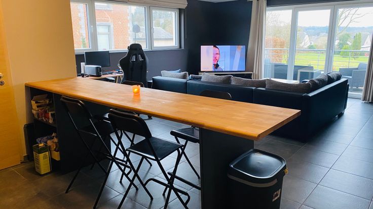 L'appartement se compose d’un hall d’entrée avec wc, d’un spacieux séjour ouvert sur une cuisine contemporaine offrant un accès direct à la terrasse, d’une buanderie, de deux chambres, d’un bureau et d’une salle d’eau (douche).