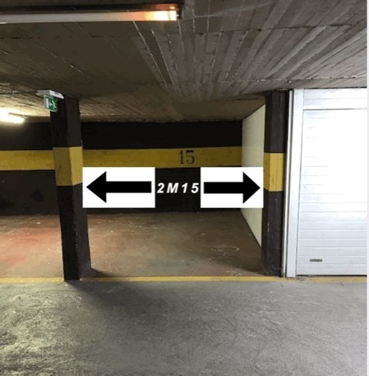 Ondergrondse parkeerplaats, - 1 verdieping in een appartementbuilding, voor stadautos zoals een Golf (zie fotos)
