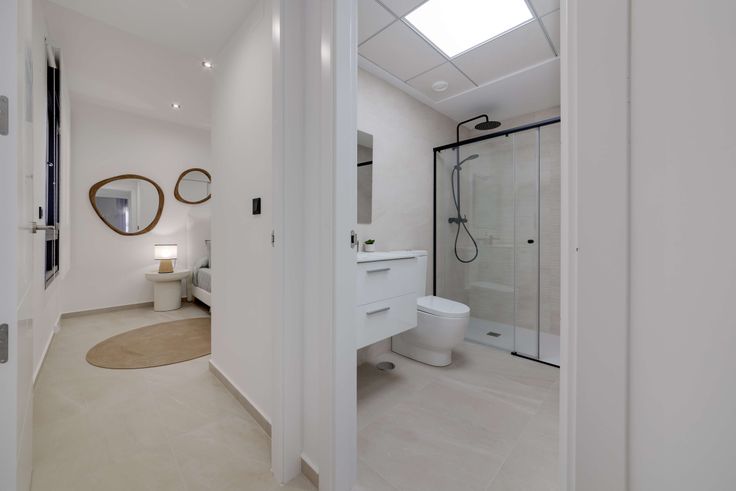 Appartementen met twee of drie slaapkamers en twee badkamers, woonkamer met open keuken en eigen garageplaats inbegrepen.