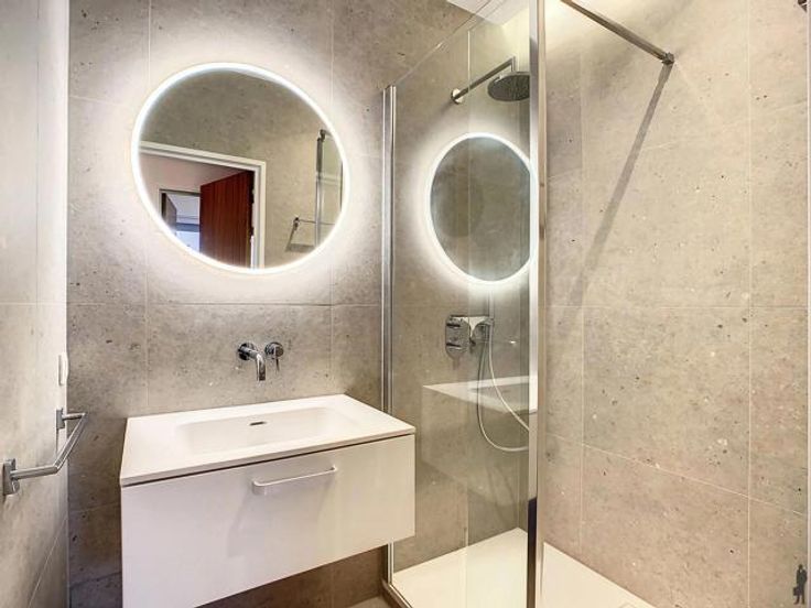 Bovendien werd het appartement grondig opgefrist: zo werden de badkamers en het toilet volledig gerenoveerd, de ramen vernieuwd, de vloer opnieuw behandeld,...etc.