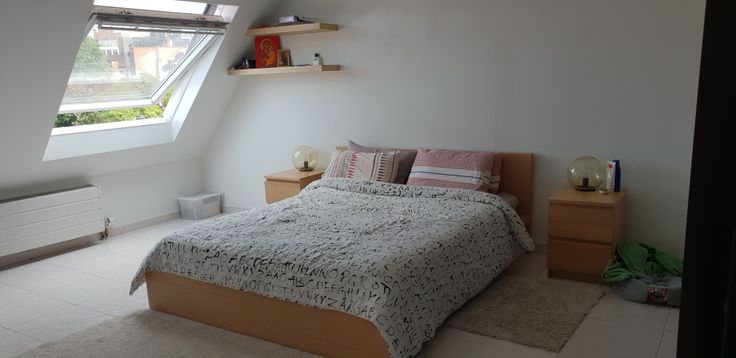 L’appartement comprend une cuisine ouverte super équipée (Frigo, lave-vaisselle), une salle à manger, un salon donnant sur une terrasse de 8 m2 avec vue sur les toits de Bruxelles, un WC séparé, une très grande chambre et une salle de bain récente. L’appartement comprend également 2 placards intégrés ainsi qu’un emplacement caché pour mettre une machine à laver et un séchoir. Idéal pour un couple. Appartement bien situé, dans une rue calme, situé dans un immeuble très bien entretenu également (très bon service de conciergerie). Le loyer inclus une provision de 100 € pour les charges. Les châssis ont été remplacés en 2019. Disponible à partir du 1er Mai 2025, visites tous les jeudis à 18h à partir du jeudi 13 Mars. Si intéressé, envoyer SMS au 0476 32 02 59 (merci de ne pas téléphoner)