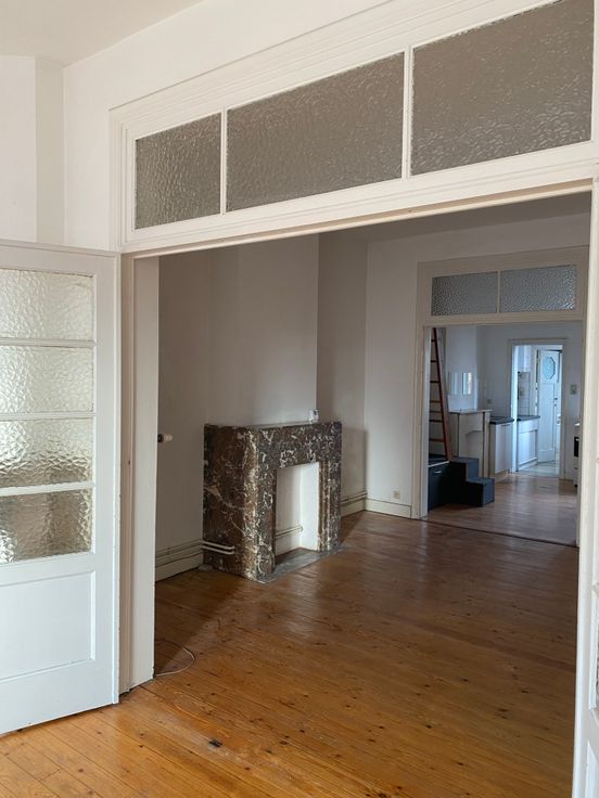 Il se compose au premier niveau d'un hall d'entrée, de trois pièces en enfilade (salon avec plancher, salle à manger avec plancher et cuisine) et d'une salle de bain. En duplex, une chambre de 10 m² accessible soit par une porte donnant sur les communs, soit par une échelle de meunier à l'intérieur de l'appartement.