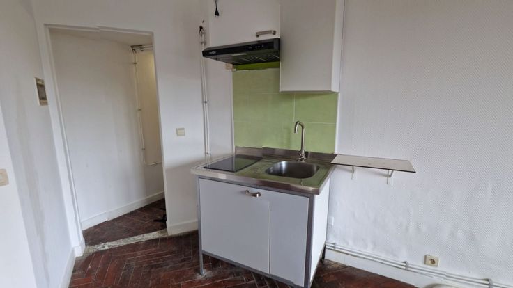 Srudio à louer à proximité de la Haute Ecole de la Province de Liège et du centre commercial Belle-Île comprenant une chambre, une kitchenette et une salle de douche.