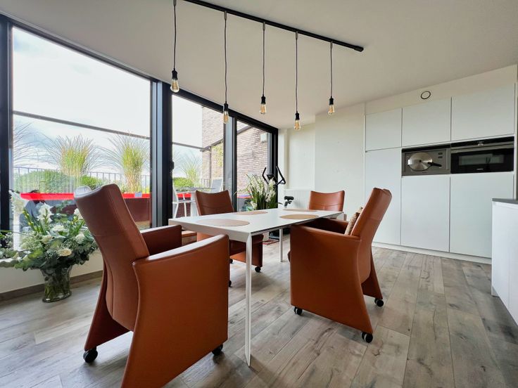 STARTPRIJS, Elk bod hoger dan deze startprijs, wordt voorgelegd aan de eigenaars, die al dan niet kunnen ingaan op dit aanbod. Deze penthouse onderscheidt zich door zijn ruim terras met prachtig verzicht, zijn bruikbare vloeroppervlakte van 140-150 m2 en zijn gegeerde ligging. De perfecte uitvalsbasis voor wie op zoek is naar een ruim en instapklaar appartement met parkeermogelijkheden. Strategisch gelegen nabij de markt van Torhout en op een boogscheut van station en diverse invalswegen. Het appartement is onderdeel van een residentie met een beperkt aantal entiteiten en omvat de volledige bovenste verdieping. Het appartement werd in gebruik genomen in 2020 en beschikt over een heel hoge afwerkingsgraad. Het maatwerkmeubilair, de luxueuze keuken en de gezellige gashaard dragen bij tot de bijzondere sfeer. We treden het appartement binnen via de inkomhal met gastentoilet. De hal biedt rechtstreeks toegang tot de lichtrijke leefruimte, ingedeeld in een zithoek met gashaard en een luxe keuken (inductiekookplaat, dampkap, warme luchtoven, combi-oven, stoomoven, vaatwas, koelkast, diepvries + ingemaakte kasten) met eethoek. De leefruimte biedt rechtstreeks toegang tot zowel een groenterras aan de voorzijde alsook aan een volwaardig terras aan de achterzijde (met automatische zonneluifel), waar het aangenaam vertoeven is. Verder beschikt dit appartement over 2 ruime slaapkamers alsook een ingericht bureel + 2 badkamers. De ene badkamer omvat een ligba... Renovatieplicht: nee