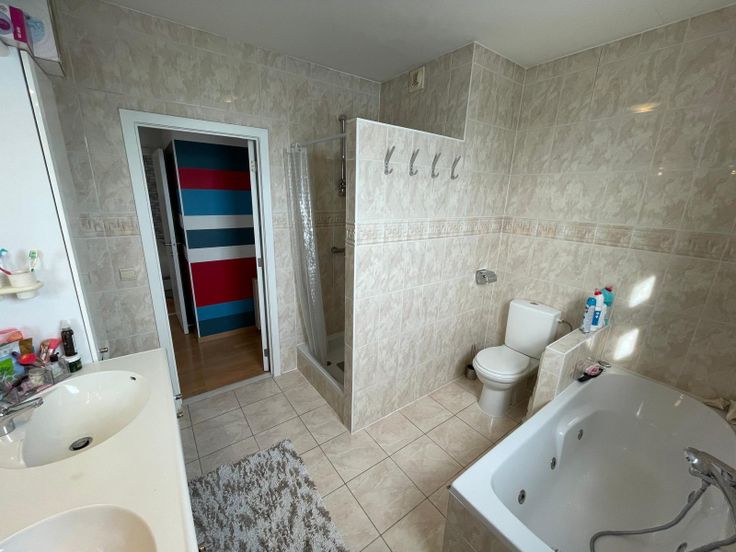 Het appartement beschikt over 3 ruime kamers (1 met ingebouwde kasten) die kunnen dienen als slaapkamer maar ook als bureau. 1 van de kamers heeft ook een aparte doucheruimte met wastafel. De grote badkamer beschikt over al het nodige comfort: douche, bad, dubbele lavabo en toilet. In de inkomhal bevindt zich een gastentoilet en aparte opbergruimte.