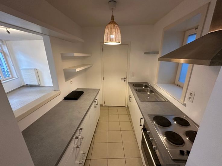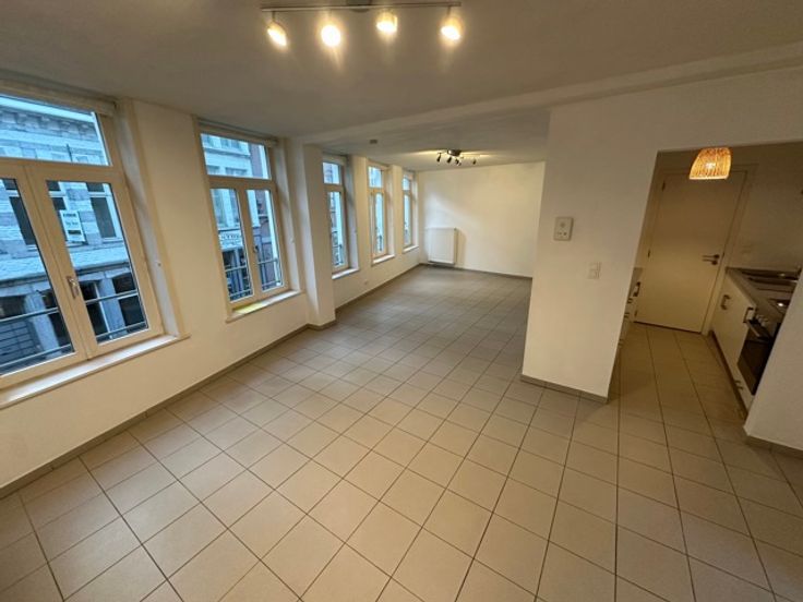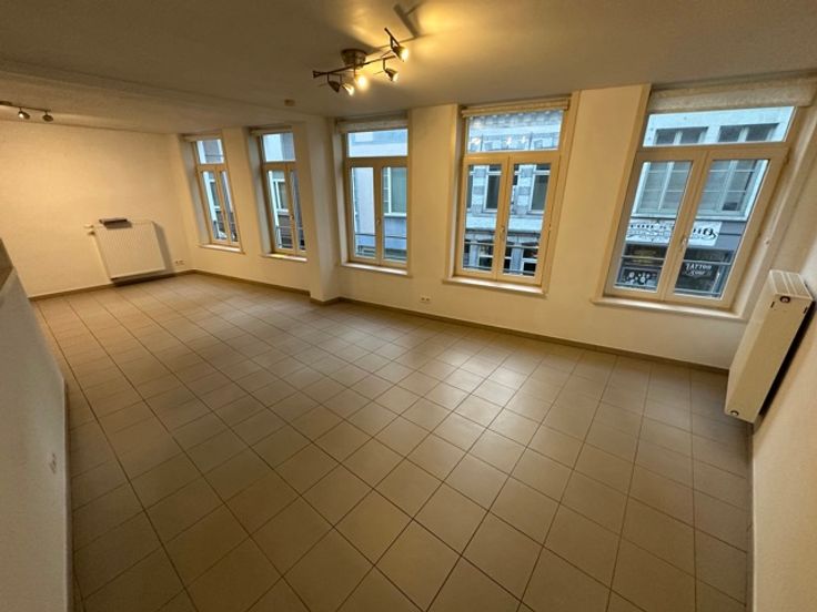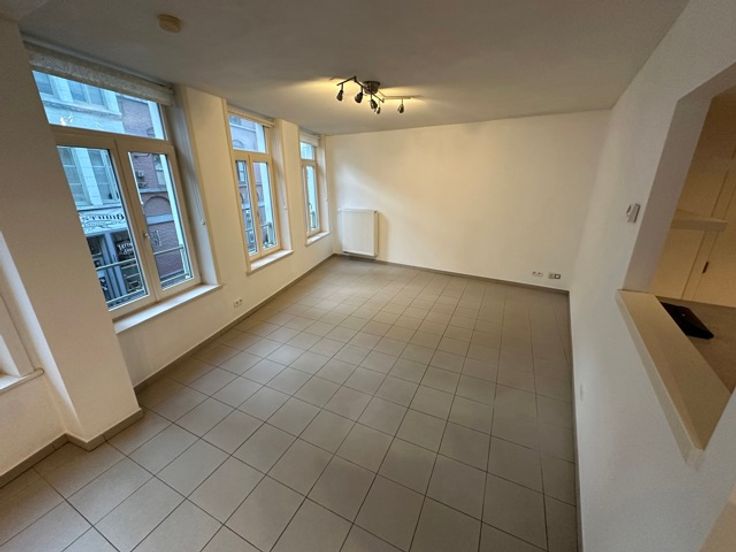 Mons, Rue de la Clé n°1/A 1er étage : Très bel appartement de +/- 90 m², moderne, en centre-ville, comprenant hall d'entrée, grand séjour avec cuisine équipée, 2 chambres, salle de bains [baignoire], buanderie, WC. Cave. Loyer : 825 €/mois + 50 €/mois de charges communes + consommation personnelle (eau, électricité, gaz). Pas d'ascenseur, pas de garage. Libre d'occupation. PEB : B, 116 kWh/m².an Renseignements et visites : ALPIMMO : 065/34.84.24 Mr. Evi Markhiev : 0485/96.51.06