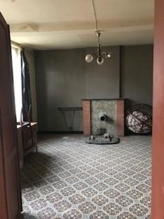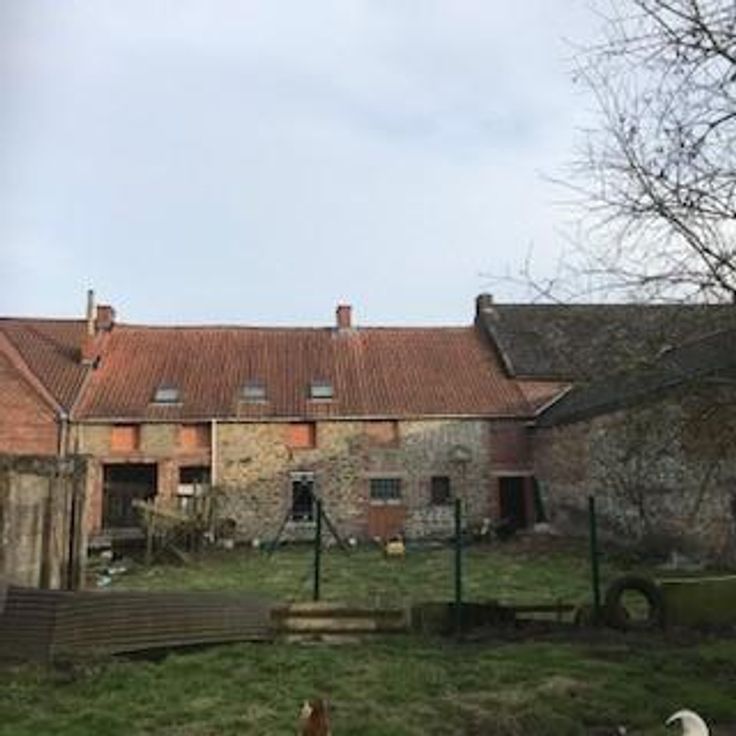 Maison de caractère avec grange attenante à réhabiliter, comprenant couloir central, 2 pièces en façade, 2 pièces à l'arrière dont 1 cuisine. Etage: 3 pièces (chambres), salle de bain, grenier. Cave Jardin Pas de chauffage PEB G Revenu cadastral : 268 euros (avec jardin) Contenance maison: 1 a 90 ca Contenance jardin: 3 a 20 ca