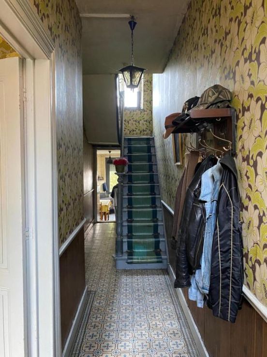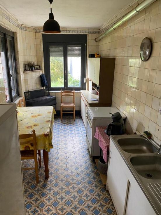 Maison composée au rez-de-chaussée d'un hall d'entrée, d'un salon, d'une salle à manger et d'une cuisine; au 1er étage de deux chambres dont une avec baignoire et au 2ème étage d'un grenier. Jardin - caves.
