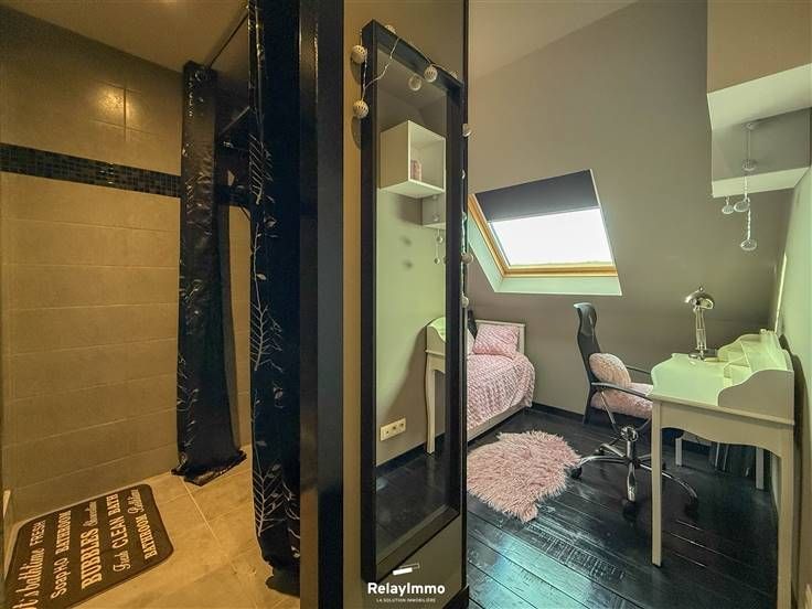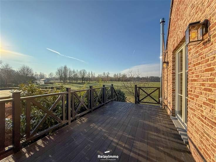 Een kamer aan de achterkant van de keuken is gewijd aan opslagruimte/sellier. Een aparte doucheruimte met wastafel en elektrische verwarming, 2 aparte toiletten, een groot houten terras met prachtig ononderbroken uitzicht over de velden.