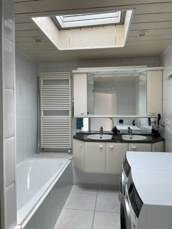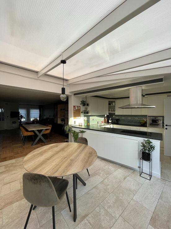 • Indeling: Zodra u binnenkomt, wordt u verwelkomd door een knusse inkomhal die leidt naar een lichtrijke leefruimte. De ruime living met eetkamer strekt zich uit over de gehele lengte van het huis (40m²) en biedt zicht op de tuin. De aangrenzende moderne keuken (9m²) is volledig uitgerust (combi magnetron-oven, ingebouwde koelkast, vaatwasser en diepvries), ideaal om heerlijke maaltijden te bereiden. De badkamer (7m²) met zowel bad als douche zorgt voor extra comfort. Op de eerste verdieping vindt u twee ruime, uitnodigende slaapkamers (19&12m²). Daarnaast beschikt het huis over een kelder, zolder en berging, perfect voor extra opslag of een creatieve invulling.