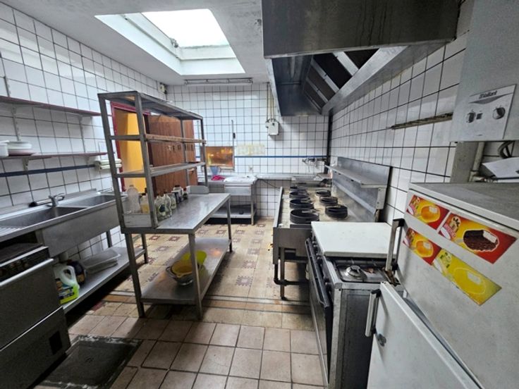 Rez-de-chaussée commercial – Anciennement exploité en restaurant, il dispose encore d’un bar, d’une cuisine professionnelle équipée et d’une réserve.