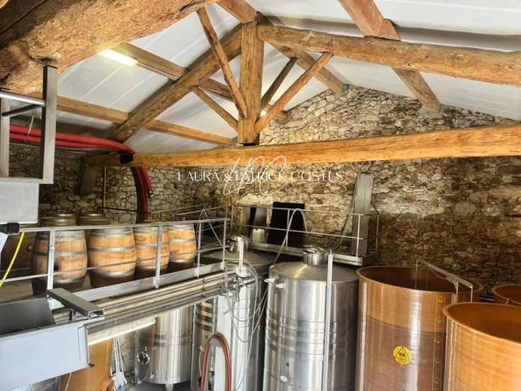 L'ensemble des bâtiments agricoles, disposés en "U" autour d'une cour spacieuse, se situe dans un charmant village, facilitant l'accès et la logistique. La cave vinicole de 135 m², dotée d'une toiture isolée en panneaux sandwich, offre une capacité de stockage impressionnante de 1 162 hectolitres.