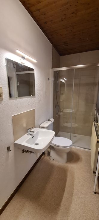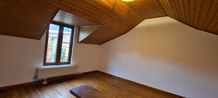 Pleine de charme, bois au sol et plafond, très cosy. Au rez-de-chaussée, buanderie, rangement, cave. 1er étage : séjour, cuisine, salle de bain. 2ème étage : chambre Rue parallèle à l'Avenue de la Station, avec ses commerces, l'Ourthe...
