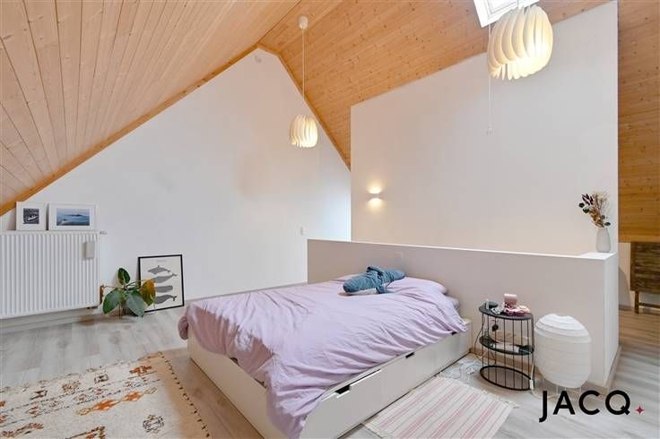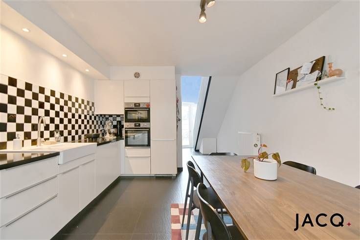 Graag meer informatie of een bezoek ingepland? Contacteer Dries op +32 473 32 76 46 of via dries@ilovejacq.be. JACQ. Real Estate stelt u graag dit uniek appartement voor gelegen in het hartje van Antwerpen. Het appartement beschikt over 4 verdiepingen en creëert daardoor het gevoel van een woning. Met een bewoonbare oppervlakte van circa 157 m² en veel natuurlijke lichtinval, biedt dit pand een rustige oase in de stad. Het appartement beschikt naast de leefruimte en ruime keuken over drie comfortabele slaapkamers en een bureauruimte, ideaal voor gezinnen of om in te richten als dressing. De open keuken is stijlvol en functioneel, met hoogwaardige inbouwapparatuur en een gezellige eethoek die uitkijkt op het zonnige terras. Dit terras biedt een perfecte plek om te ontspannen, met voldoende ruimte voor een zit- en eetgedeelte. De indrukwekkende leefruimte op de 1ste verdieping baadt in natuurlijk licht dankzij de grote ramen en is smaakvol ingericht met moderne accenten. Via de trap kom je aan op het 2de verdieping waar twee slaapkamers, een badkamer en de berging terug te vinden zijn. De moderne badkamer beschikt over een ligbad, een aparte inloopdouche en twee wastafels. In de berging zijn aansluitingen voorzien om wasmachine en droogkast. Op de bovenverdieping, bevindt zich de master bedroom die zich onderscheidt door zijn ruimtelijkheid en een prachtig afgewerkte houten plafond. Extra opslagruimte en een fietsenstalling maken het plaatje