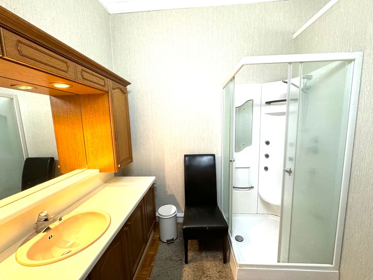 Gelijkvloers: De inkomhal geeft toegang tot een multifunctionele ruimte, die zowel als slaapkamer of als gezellige woonkamer kan dienen. Aansluitend bevindt zich er ook een badkamer met een lavabo en een douchecabine met jets. Verder is er een ruime keuken, die mooi aansluit bij de woonkamer, een apart toilet en een praktische berging. Aan de zijkant van de woning is er een tweede inkomhal met directe toegang tot de inpandige garage.
