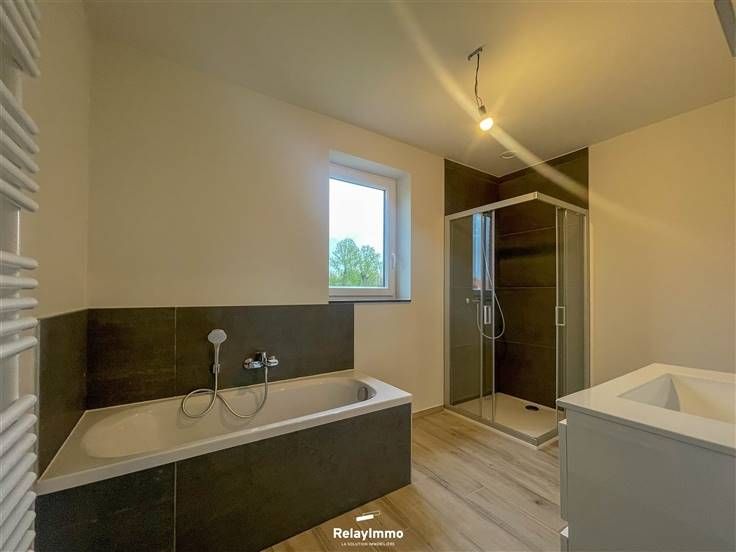Volledig betegeld, vloerverwarming op de begane grond, individuele meters, PVC DV kozijnen, alarmsysteem, branddetectie, grote garage en terras, zeer goede EPB!