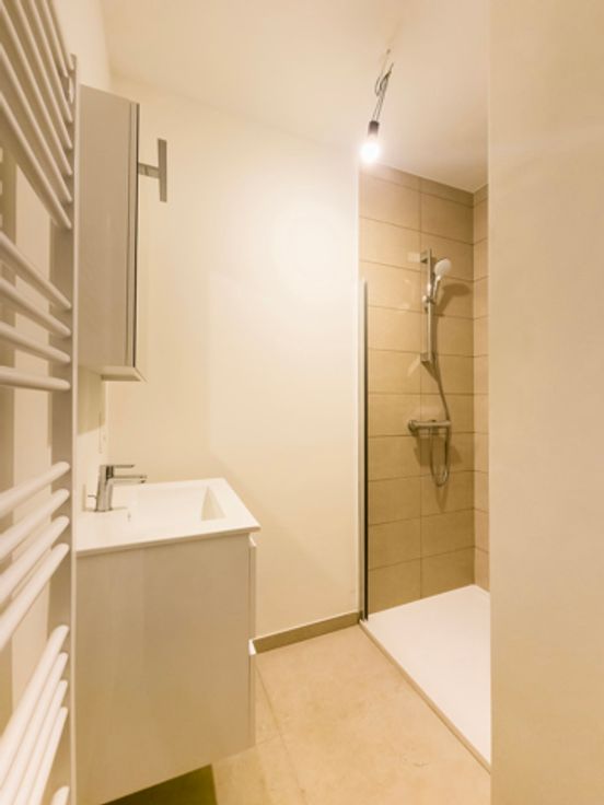 Het appartement is gelegen op de 1ste verdieping van het gebouw met lift. Vanuit de leefruimte heeft u toegang tot het prachtige terras met uitzicht op de binnentuin. De grote schuifdeur zorgt voor veel natuurlijk licht en een mooi zicht op de tuin. Het betreft een open leefruimte met een aansluitende keuken. De keuken is volledig uitgerust met de nieuwste toestellen, evenals de meest energiezuinige koel-vriescombinatie. De groene, bijna energieneutrale residentie maakt deel uit van een park met een beschermd natuurgebied en ligt op 500 meter van het winkelcentrum van Wilrijk. Van daaruit bent u in slechts tien minuten met de auto in Antwerpen en in enkele minuten op de A12 of E19 richting Brussel. Er is een fietsenstalling met oplaadpunten voor elektrische fietsen. De gemeenschappelijke kosten, warm water en verwarming bedragen 175€/maand. Mogelijkheid om een parkeerplaats in het gebouw te huren voor 145€/maand.