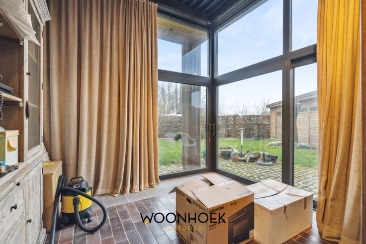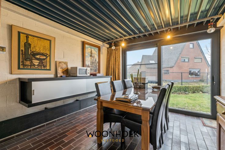 De leefruimte is voorzien van een zithoek waar het steeds gezellig vertoeven is. Hiernaast treffen we een extra leefruimte aan. Deze is voorzien van grote raampartijen die zorgen voor een natuurlijke lichtinval. Via een prachtig schuifraam verkrijgen we toegang tot de zonnige tuin.