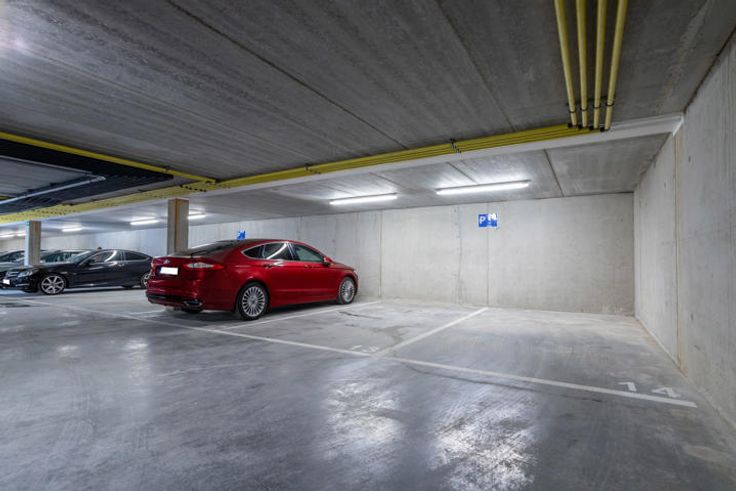 De ondergrondse parking is heel toegankelijk en wordt afgesloten met sectionale poort.
