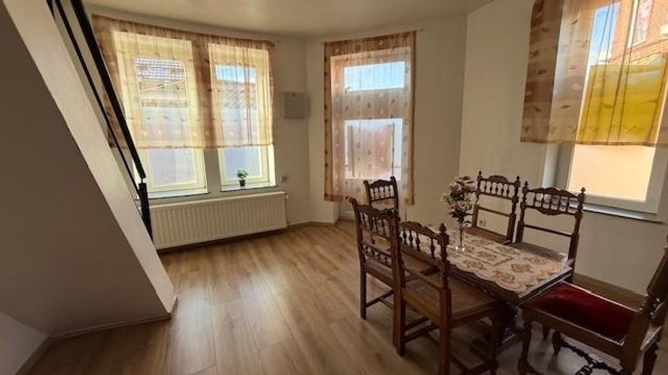 Belle maison de rapport rénovée avec cour (idéale pour investisseur) - RDC entièrement revêtu de parquet : petite entrée - 1 salon - salle-à-manger - grande cave carrelée (boiler + adoucisseur d'eau) - salle de douche (douche - wc - meuble évier simple) - cuisine - cour (+ annexe) !!! ATTENTION : discordance avec le plan cadastral qui ne reprend pas cette annexe => l'acquéreur en fera son affaire personnelle !!! - ETAGE 1 (entièrement revêtu de parquet) : 3 chambres (dont une avec cuisine)- SDB (wc - meuble évier - baignoire) - ETAGE 2 (parquet) : hall de nuit - chambre - SDB (bain - meuble évier - wc) - GRENIER par trappe. Contenance cadastrale : 100 ca - Bien actuellement occupé (bail 500 eur / mois)