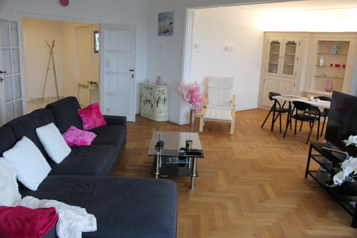 Au 6ème étage droit. Hall d’entrée avec porte blindée aux normes incendie. Grand living. Nouvelle cuisine équipée. Hall de nuit + placards - Nouvelle salle d’eau avec douche italienne et meuble lavabo. Toilettes séparées. Une grande chambre et une plus petite. Terrasse en véranda à l’arrière. Ascenseur. Petite cave.