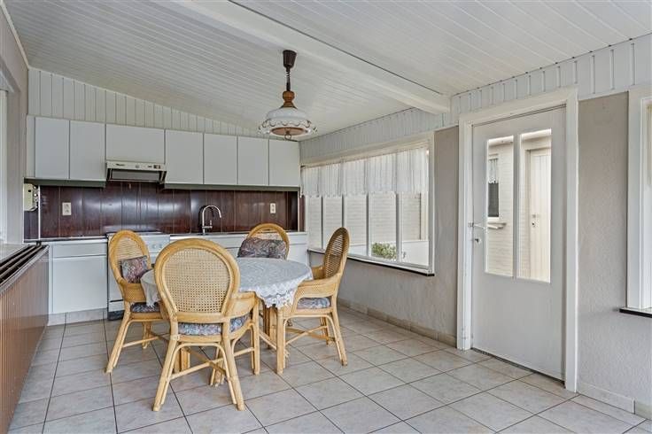 Beneden: inkomhal, leefruimte (ca.31 m²) met naastliggende eetplaats (ca.8 m²), veranda met keuken, overdekt terras, bijgebouw met badkamer (recente inloopdouche), berging/wasplaats (verwarmingsketel), WC. Boven: nachthal en 3 slpkmrs. (ca.16, 13 en 7 m²). Door de aanwezigheid van een vaste trap naar zolder bestaat de mogelijkheid om op de dakverdieping nog 1 of 2 bijkomende slaapkamers in te richten.