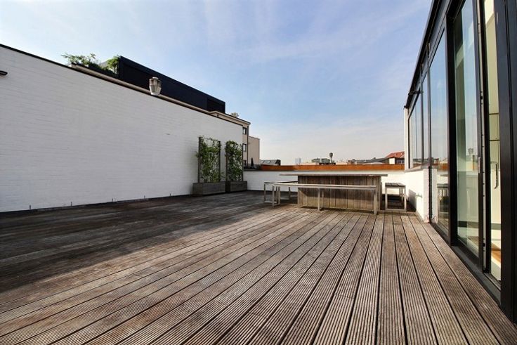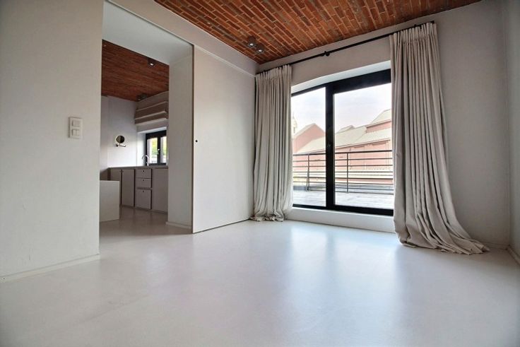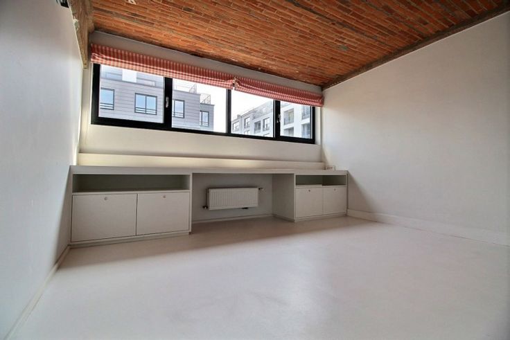 MAGNIFICENT duplex penthouse of 200 m² and terraces on the second and third floor of a beautiful loft-style building. Along the Canal and a stone's throw from Dansaert, completely renovated with high-end materials. Composed as follows; Entrance hall with cloakroom and separate toilet, a TV lounge, 3 beautiful bedrooms (possibility of a 4th) including one with bathroom, and a shower room. Upstairs, a large bright living room opening onto a large SOUTH-facing terrace, you have a fully equipped latest generation kitchen. In addition, an independent studio included. Possibility of a 2-car garage box inside the enclosure (150 € / month).