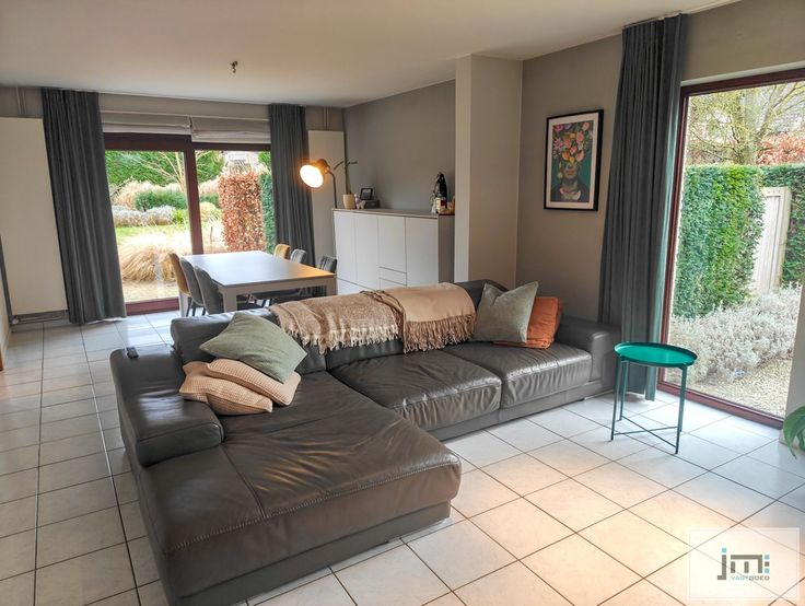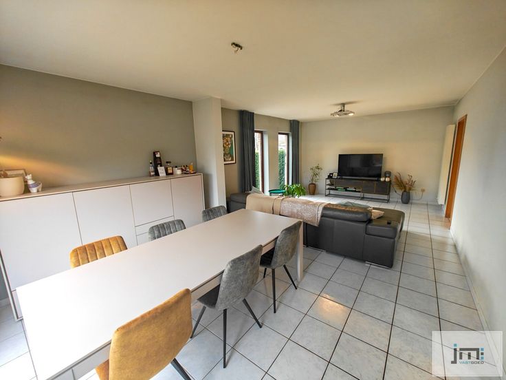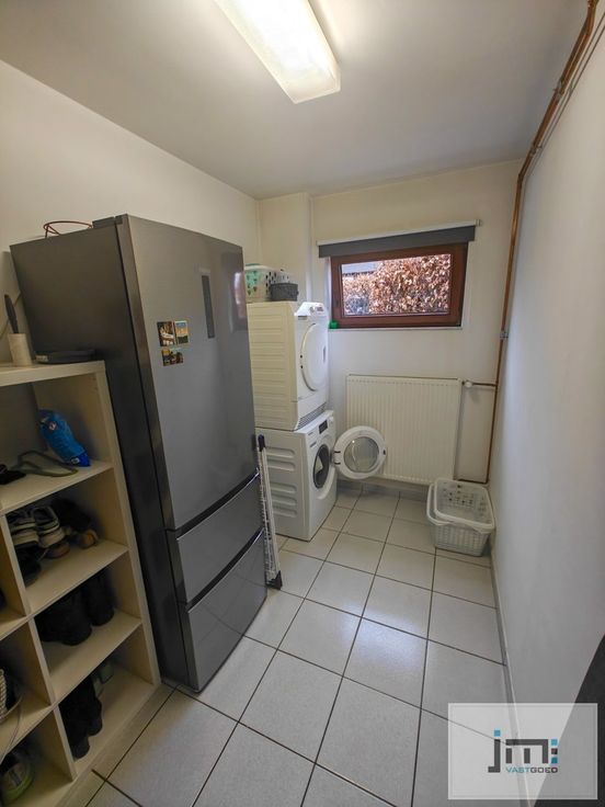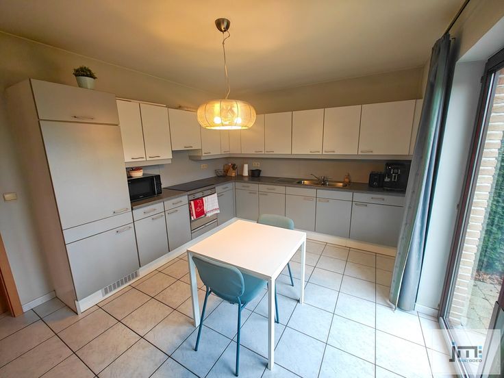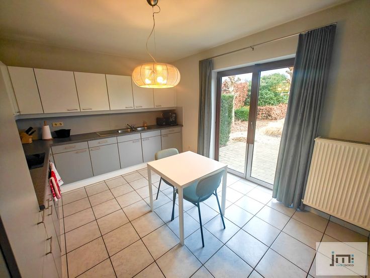 Via de inkomhal hebben we toegang tot alle ruimtes op het gelijkvloers. De ruime keuken, voorzien van alle moderne gemakken, creëert een open en gezellige sfeer en biedt een mooi zicht op de tuin en het terras. De woonkamer, met eet- en zithoek, is toegankelijk via zowel de keuken als de inkomhal.