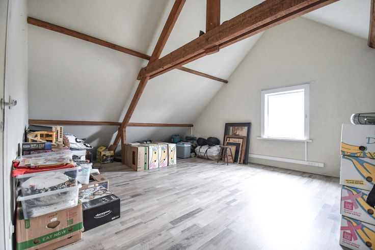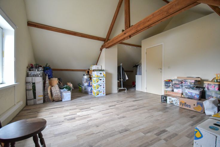 Vanuit de keuken is er een directe doorgang naar de grote tuin. Naast de keuken is een open ruimte die zowel een leefruimte met gezellige zithoek en gashaard als een eetplaats bevat. De vele raampartijen zorgen niet alleen voor veel daglicht, maar tevens voor rechtstreeks contact met de tuin. Op de eerste verdieping is er een badkamer uitgerust met een ligbad, lavabo en toilet. Daarnaast zijn er 2 ruime slaapkamers met zicht op de tuin. Op de tweede verdieping is er een ruime zolder met mogelijkheid tot derde slaapkamer. Buiten is er een oprit met parkeerplaats voor minstens 2 wagens, een terras en een grote tuin waar u een ruime opbergplaats vind waarin zich een berging bevindt en daarnaast nog een aparte, ruime garage.