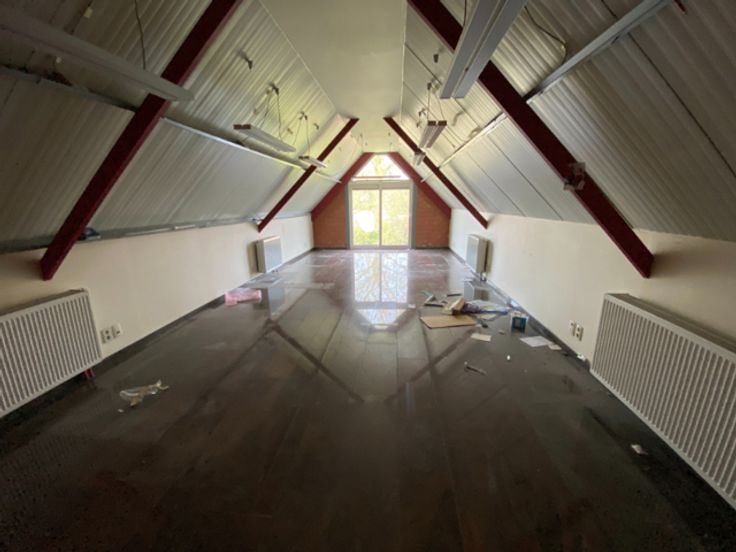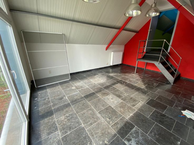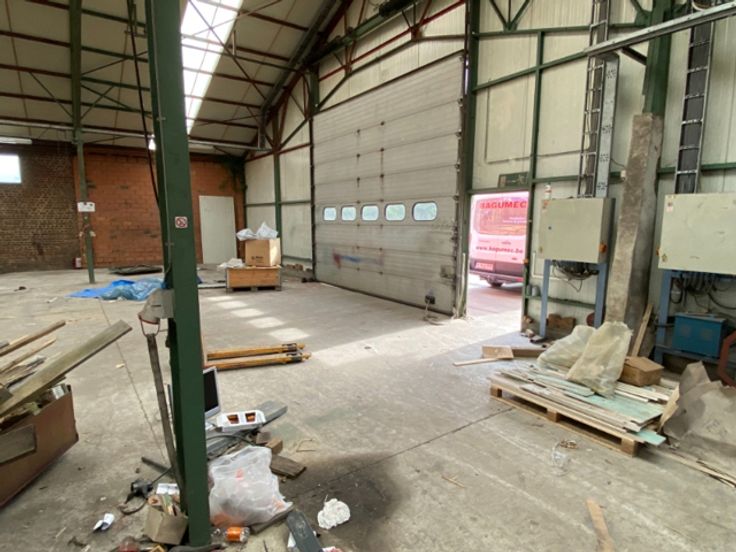 Opslagruimte met kantoor te huur in Oordegem, ideaal gelegen naast de N9 en op 9 km van de E40 (afrit 17 Wetteren). Het magazijn van circa 599 m² heeft twee sectionaalpoorten. Op de begane grond zijn een kitchenette, toiletten en een badkamer (42 m²) aanwezig. Op de eerste verdieping bevindt zich een kantoor met archiefruimtes (133 m²), voorzien van verwarming en elektrische aansluitingen.