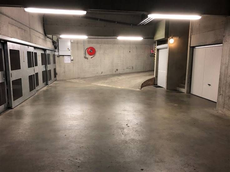 Centraal gelegen binnenparking in de benedenverdieping van de residentie Ekina die men bereikt via de gemeenschappelijke autolift. Het betreft de parking nr 2 die gedeeld wordt met liftsysteem van parking 1. ( 2 wagens onder of boven elkaar )
