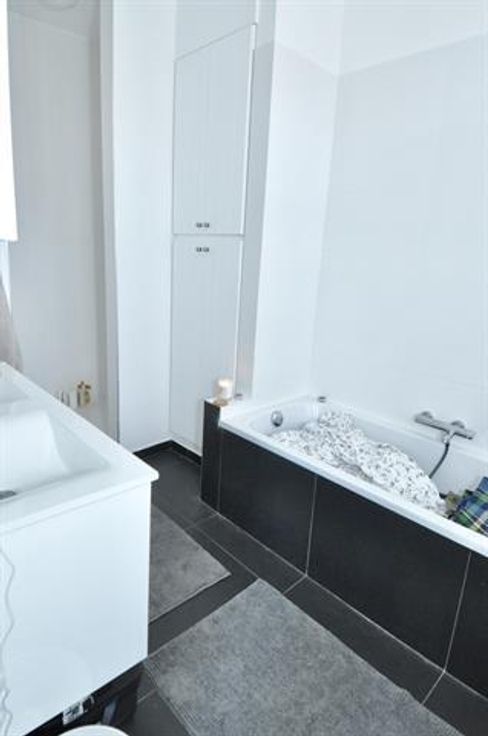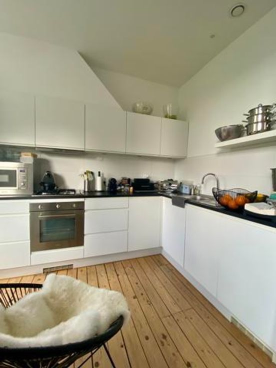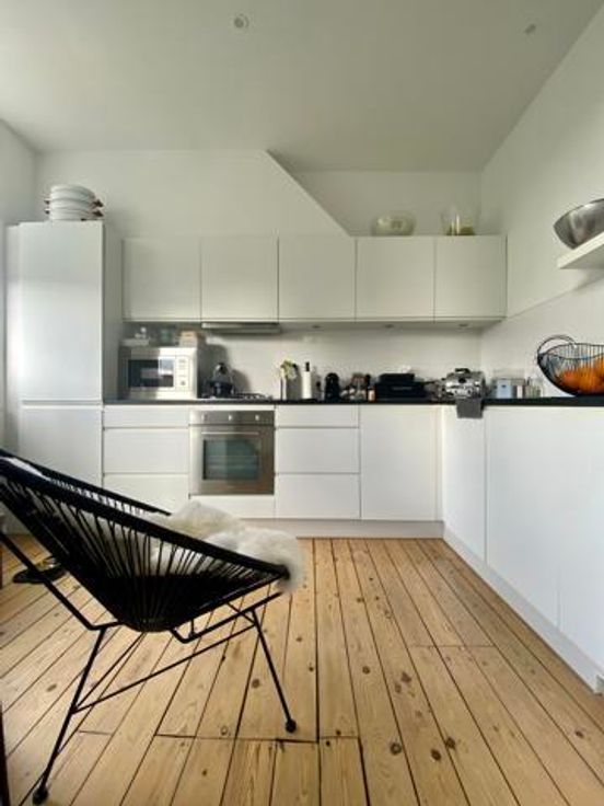 L’appartement se compose d’un séjour de +/- 20m2, une belle salle à manger de +/- 15m2, d’une cuisine américaine super équipée de +/- 10m2, une grande chambre de +/- 20m2, une salle de bain (bain + douche) de 8m2, une toilette séparée, et une jolie terrasse très bien exposée avec vue sur les jardins. + Cave privative de +/- 6m2. A proximité immédiate de la place de l’Altitude 100, Parc Duden, nombreux commerces et transports. Libre à partir du 15/03.