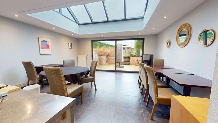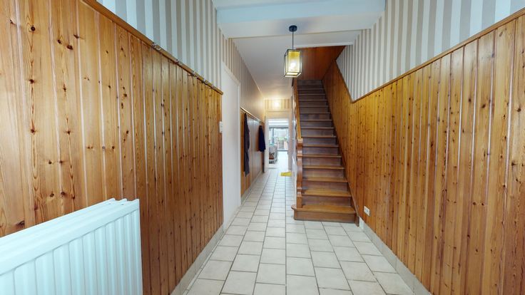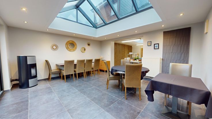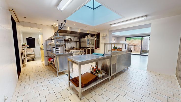 La maison se compose: vaste hall d'entrée, cuisine professionnelle, salle/séjour, salle/salle à manger/salon (vers jardin), sanitaires, salle de douches avec wc, arrière cuisine, chaufferie, débarras, hall de nuit, 3 chambres, grenier facilement aménageable.